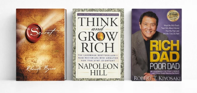 - Membaca Think and Grow Rich, The Secret, Rich Dad Poor Dad